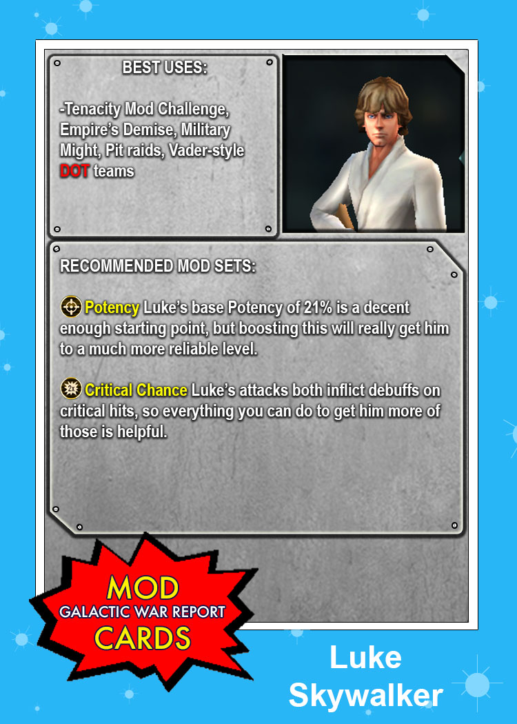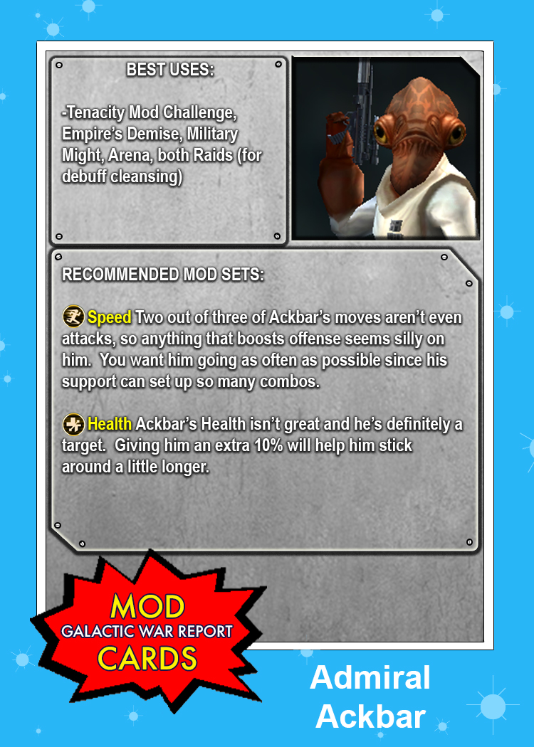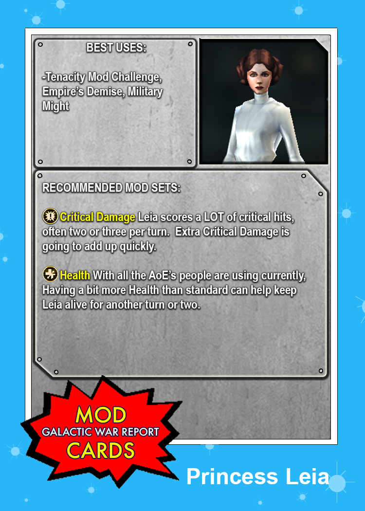 Just in time for the return of The Emperor’s Demise event: A four pack of Rebel MOD CARDS! If you’re trying to set your Rebels up for success, make sure their Mods are doing as much work as they can! Also, look for tomorrow’s episode of Galactic War Report for a look at which Rebels will pull their weight in this highly-anticipated event!